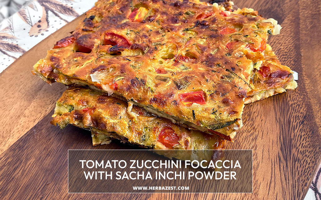 This flavorful tomato zucchini focaccia is the perfect savory option for lunch or dinner. It packs several servings of vegetables, and it's enriched with complete protein from sacha inchi. It's a quick and delicious way to boost your daily nutrition.