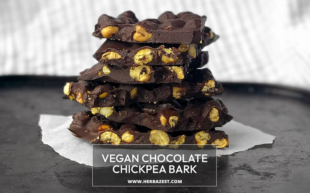 If you're in the market for an easy, yummy, and nutrient-packed snack, look no further than this vegan chocolate chickpea bark. It's rich in protein from chickpeas and antioxidant compounds from cacao. Roasted chickpeas have a lovely crunch and a neutral flavor that goes well with chocolate. You won't be able to tell you're eating legumes.