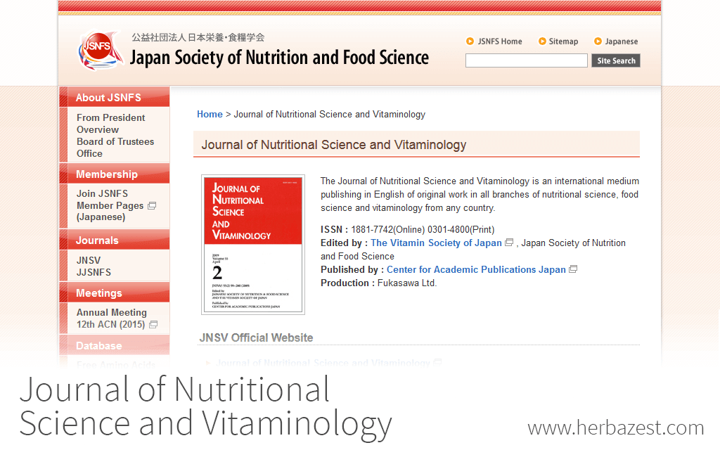 The Journal of Nutritional Science and Vitaminology is a joint collaboration by the Japan Society of Nutrition and Food Science and the Vitamin Society of Japan, and has taken the place of the Journal of Vitaminology ever since 1973. It aims to cover original research and reviews from all branches of vitaminology, food science, and vitamin co-enzymes. A new issue is published on a bi-monthly basis, both in print and online. Its five-year impact factor is 1.37.