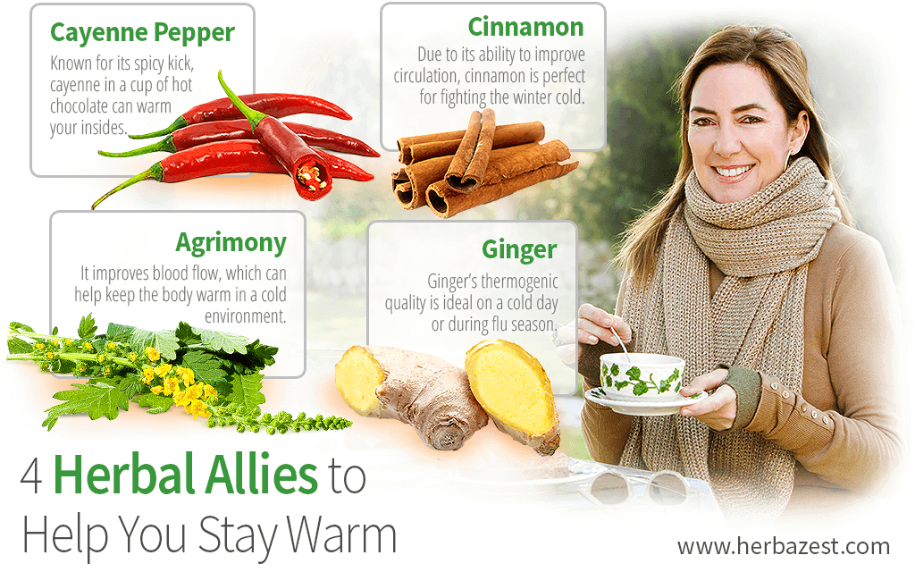 You're bundled up, wearing more layers than normal, and you're still cold. Most people are unaware that simple household herbs can warm you up from the inside out. Four common household herbs have a diaphoretic effect, or ability to raise body temperature. Try each and every one of them in your next meal or drink to ensure you stay warm while curled up with a good book!